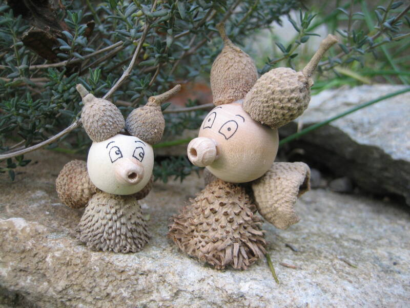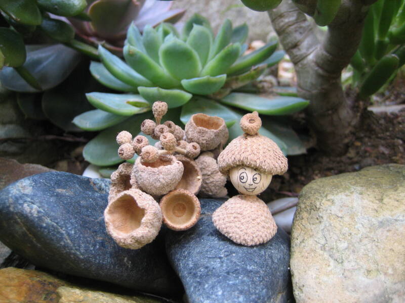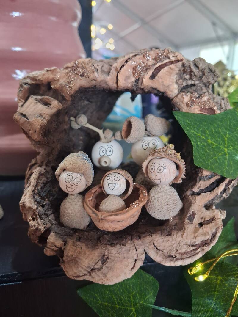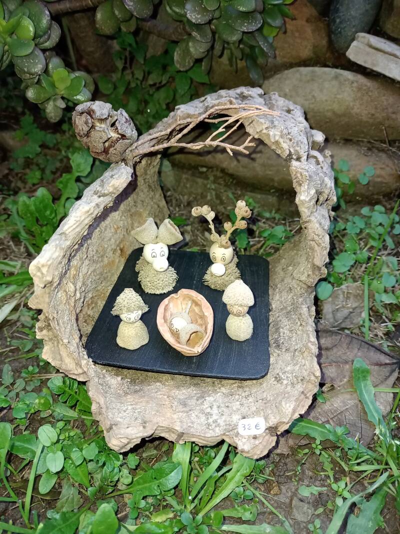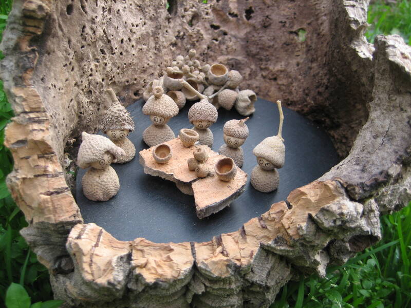 Tout un univers avec des personnages en cupules de chêne et leurs abris en chêne liège...