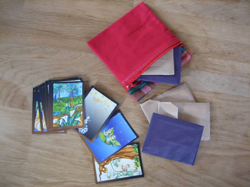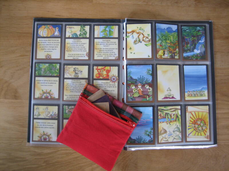 Pour découvrir les cartes au fur et à mesure, des sachets contenant 6 cartes sont à ouvrir... quand on le souhaite ! Une pochette en tissu contient l'ensemble.